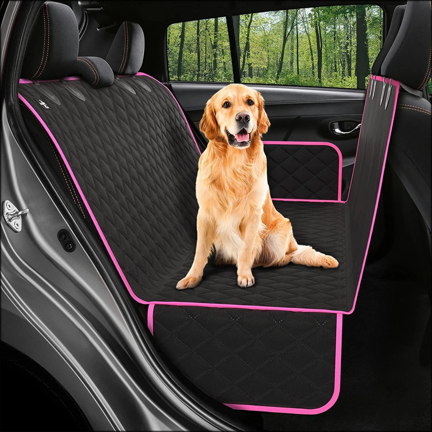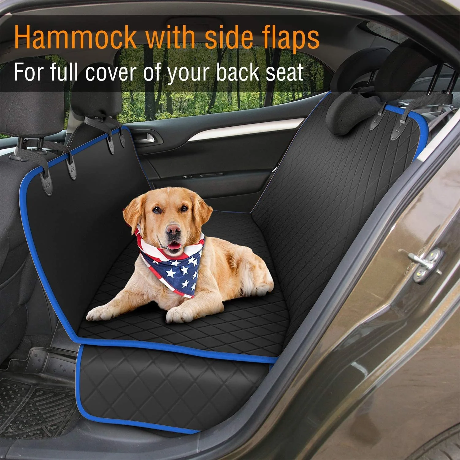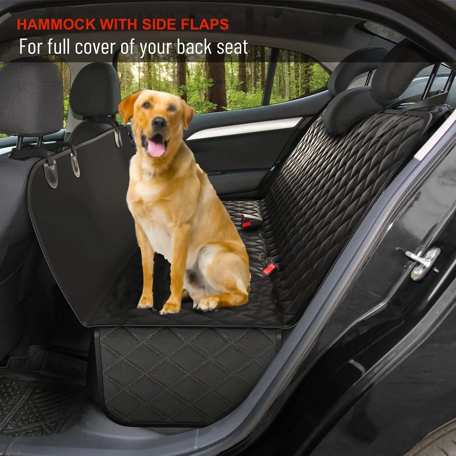 Dog Car Seat Cover, 600D Heavy Durable Dog Seat Cover for Back Seat, 100% Waterproof Scratch Proof Nonslip Dog Hammock for Car with Side Flap, Pet Back Seat Covers for Car with Seatbelt